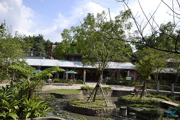 公園內的溫泉庭園造景池,種滿了各式各樣的植物、日式風格的造景、